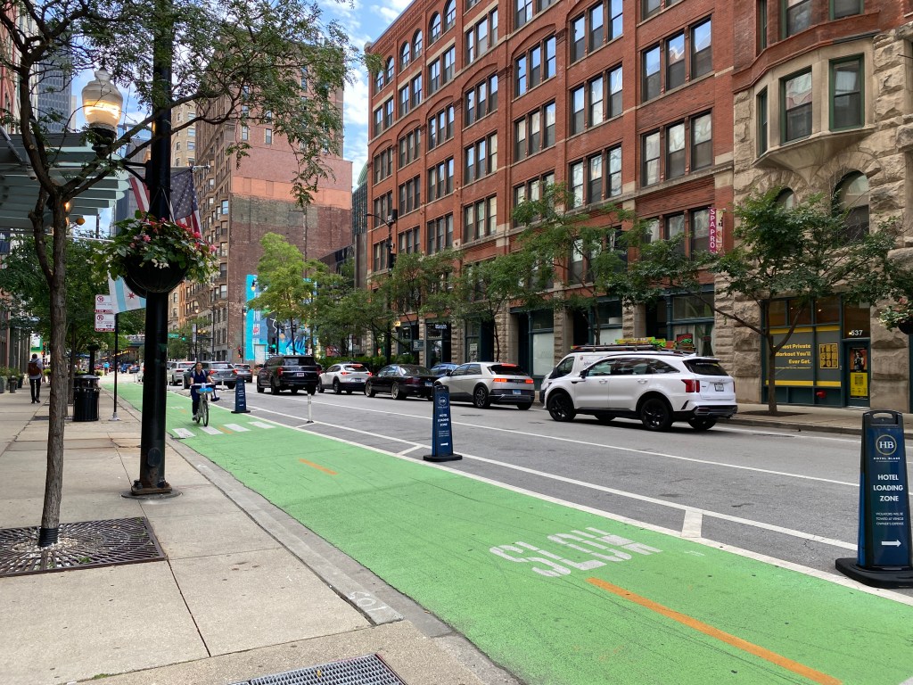 When we woke, we had a little time to kill before our train was scheduled to depart, so we explored downtown Chicago on foot. Right outside our hotel door, we were pleasantly surprised to see a well-used bicycle lane and plenty of available Lyft rental bikes, ready to roll.